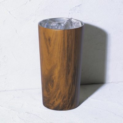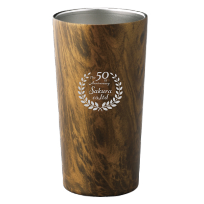 大切な方へ贈る周年記念品に、ウッド調デザインのステンレス真空タンブラーはいかがでしょうか。抜群の保温・保冷力で一年中活躍。冷たい飲み物をいれても外側が結露しにくく、デスクを濡らしません。おしゃれな木目柄とタンブラー中央部への名入れで、より特別な記念品に仕上がります。