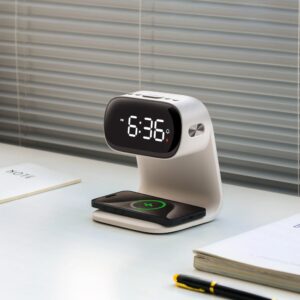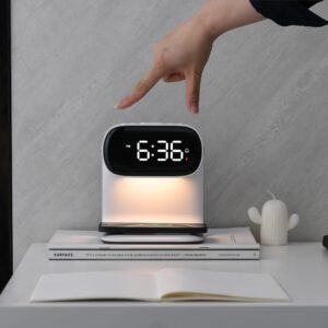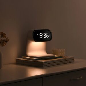 企業の周年記念品や特別なギフトに、実用性とデザイン性を兼ね備えた本当に喜ばれるアイテムを選びたいとお考えの担当者様に、ワイヤレスチャージングクロックをご提供します。スマートフォンを置くだけで充電が可能。忙しい朝や就寝前も、ケーブルを探す手間がありません。大きなLEDライト表示で時刻がすぐに確認でき、さらに便利な温度表示機能付き。枕元に最適な優しい光を提供する4段階調光ライトを搭載。夜間の目覚めや授乳時にも便利で機能性が高いデジタルクロックとして長くご愛用いただけます。ベッドサイドだけではなく、デスクやリビングにも馴染むシンプルでスタイリッシュなデザインです。背面に名入れ可能。企業のロゴやオリジナルメッセージををいれることができます。お客さまや従業員に感謝の気持ちを伝える、記憶に残る記念品を贈ってください。
