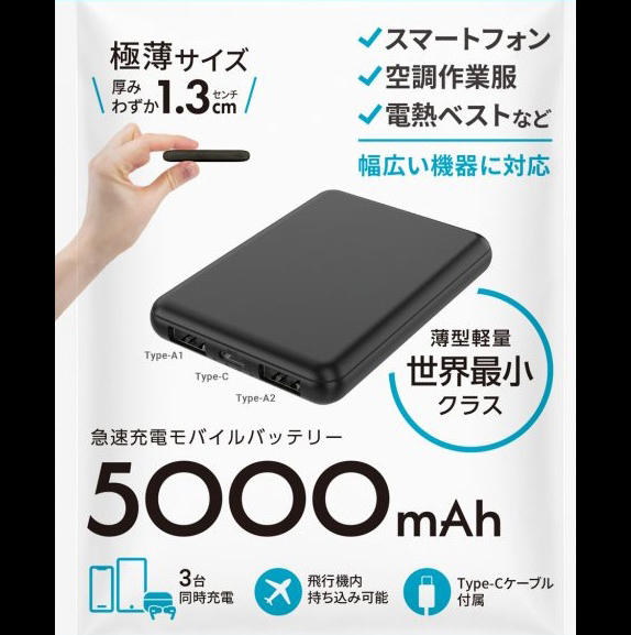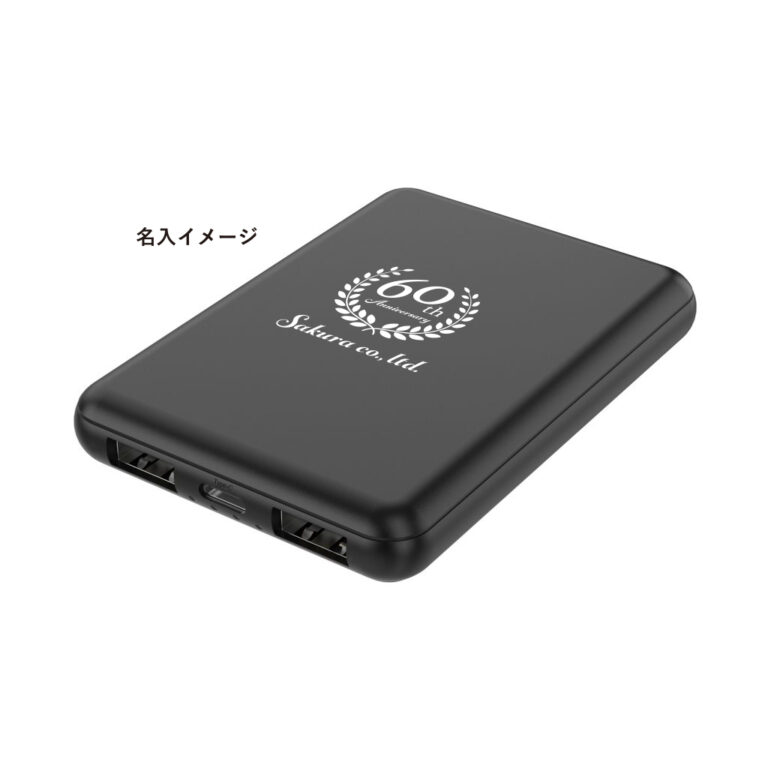 企業の周年記念品、顧客向けノベルティとして、毎日使っていただけるアイテムをお探しのご担当者様へ。 このモバイルバッテリーは日本の電機用品安全法(PSE法)の基準に適合した安心の高品質モデルです。モバイル機器が必須の現代において「あれば必ず役に立つ」実用性と「安全性の保障」という2つの価値を提供します。モバイルバッテリー業界のなかでも世界最小クラスの極めてスリムな設計。バッグやポケットに入れてもかさばらず、日常使いに最適。薄型モバイルバッテリーのノベルティや記念品として多くの方にお喜びいただいております。シンプルでモダンな形状に、企業のロゴやオリジナルメッセージをいれて、大切な方に贈る記念品としてお使いください。