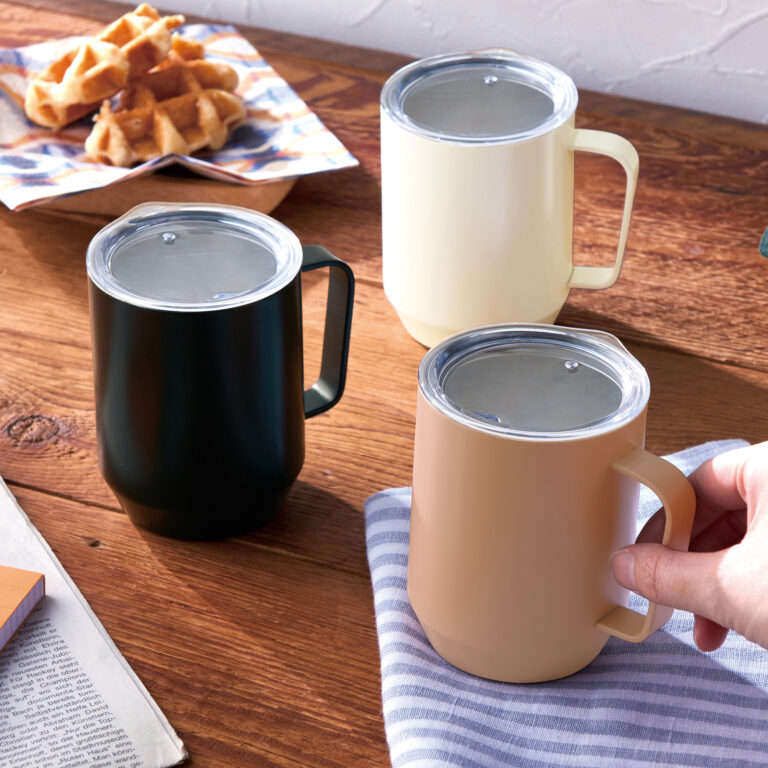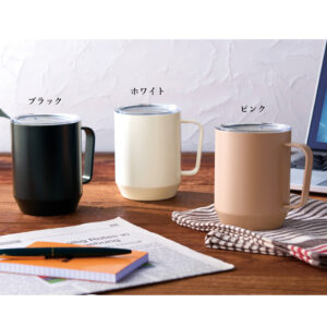 企業の節目を祝う大切な記念品に。オフィスでも自宅でも長く愛用される、実用性とデザイン性に優れた「蓋つき真空ステンレスマグカップ」をご紹介します。 トレンドのニュアンスカラー、ピンク、ホワイト、ブラックの3色展開で、性別や年代を問わず喜ばれるお品です。 「適温」を逃さない真空二重構造で、熱い飲み物を入れても外側が熱くならず、冷たい飲み物でも結露しません。 仕事中のデスクワークに最適です。 ホコリを防ぐ便利な蓋つきで保温・保冷効果を更に高めます。 たっぷり入る400㎖サイズでスープカップにもお使いいただけます。 15個以上のご注文で本体への名入れ印刷が無料。 企業や周年記念のロゴ、校章や卒業記念の名入れなどが可能です。