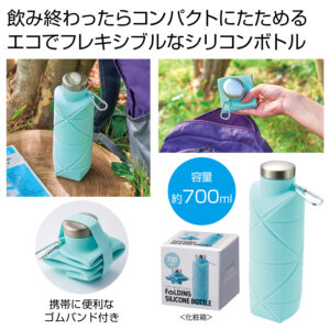 SDGsなグッズのご紹介です。エコでフレキシブルな次世代ボトル。企業の新しい歩みを象徴する記念品に、環境に配慮した「折りたたみシリコンボトル」はいかがでしょうか。使い終わったらコンパクトに畳んで持ち運べる「折りたたみシリコンボトル」はプラスチック削減に貢献するエコな記念品として注目されています。オフィスからアウトドア、さらには防災グッズとしても役立つ、時代にマッチしたセレクトです。耐熱性と安全性に優れたシリコン製で、落としても割れる心配がありません。スポーツシーンやお子さまのいる社員様へのギフトとしても安心です。バッグやベルトループに取り付けられるカラビナが付属。アクティブなシーンでもスマートに水分補給が可能です。 オリジナリティを高める「名入れ」対応で、企業ロゴや記念ロゴ、校章やオリジナルマークなどを印刷できます。