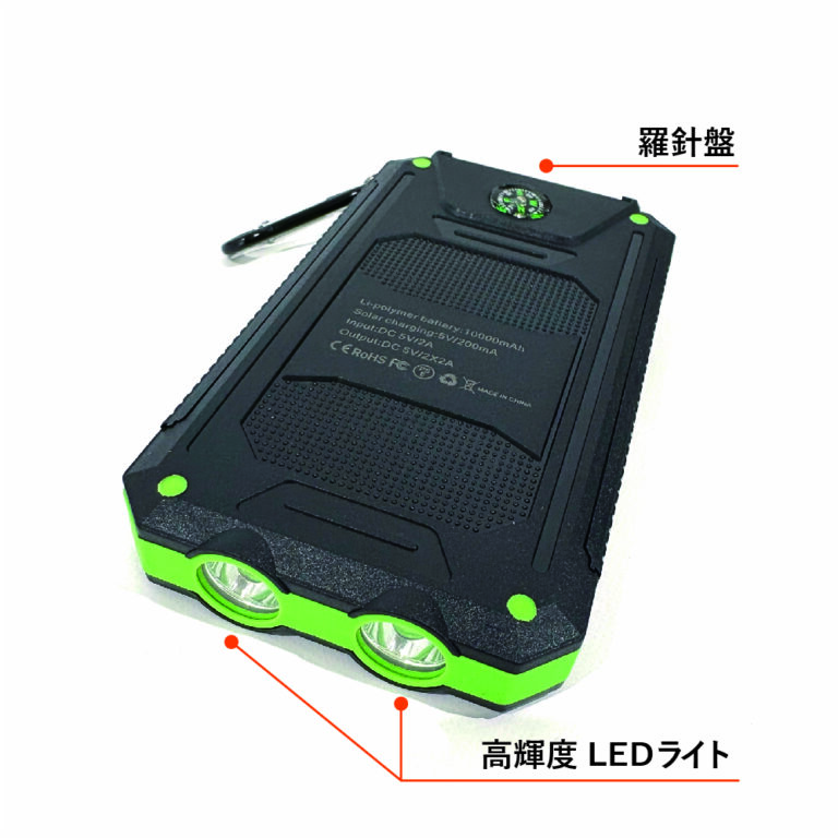 - 10,000mAh大容量充電器 2USB出力ポート羅針盤が付きIP67完全防水 高輝度LEDライト付き 災害時/旅行/アウトドアに大活躍 iPhone/Android対応 SOS発信 UL/ROSH/PSE認証済