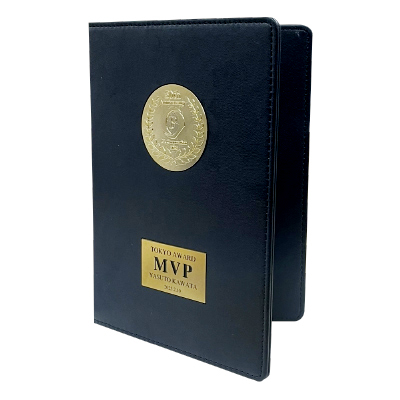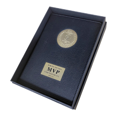 手に取る度に誇りが蘇る「オリジナルメダル付きブックカバー」は企業のMVP表彰や永年勤続・叙勲記念など、一生に一度の価値のある瞬間のために誕生しました。お手入れのしやすい合皮のカバーに貴社専用のオリジナルのメダルを配したこの逸品は贈られる方の功績を永遠に称える最高の証となります。 メダルはデータを入稿いただき企業のロゴや独自の紋章を浮き出し加工で制作できます。世界に一つだけの意匠が、圧倒的な特別感を演出します。 メダルに加え、個人の指名や日付を刻印できるプレートも装着可能。一人一人の功績に寄り添った、パーソナライズなギフトを実現します。 オリジナル冊子をつくり、装着することも可能です。記念誌やメッセージカードを添えることで、より深い感謝を伝えられます。【おすすめシーン☞】●MVP・社内表彰制度…年間最優秀賞やプロジェクト達成の記念として。盾やトロフィーとは異なる持ち歩ける栄誉に。●永年勤続、定年退職記念…長年の献身に対する感謝を、一生ものの読書用品と共に。●叙勲、受賞祝い…格式が求められるお祝いの席での、格調高い贈答品として。